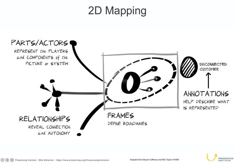 Kelvy Bird from the Presencing Institute suggests the following process in modeling a system.